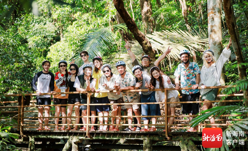 海南旅游国际推荐官走进呀诺达热带雨林。记者 李昊 摄