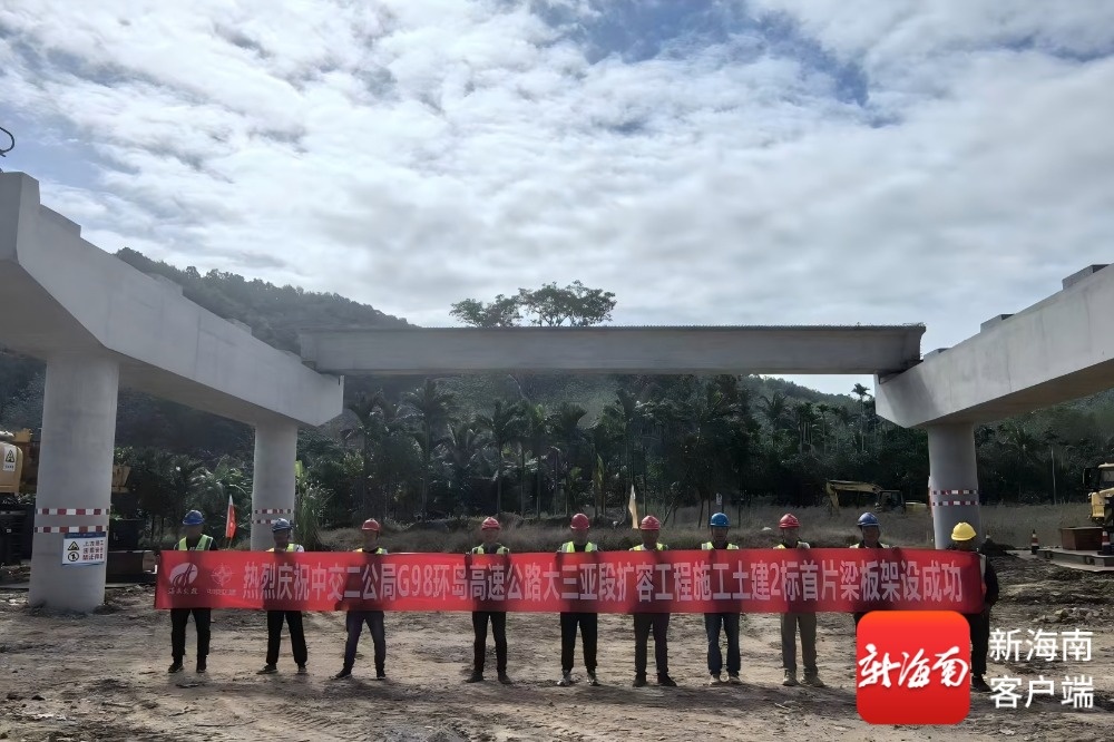 南海网、新海南客户端11月22日消息(记者 王小畅 通讯员 苏欢)11月21日,由中交二公局承建的G98环岛高速公路大三亚段扩容工程施工土建2标项目首片预制箱梁成功架设,标志着项目建设正式迈入桥梁上部结构施工新阶段。