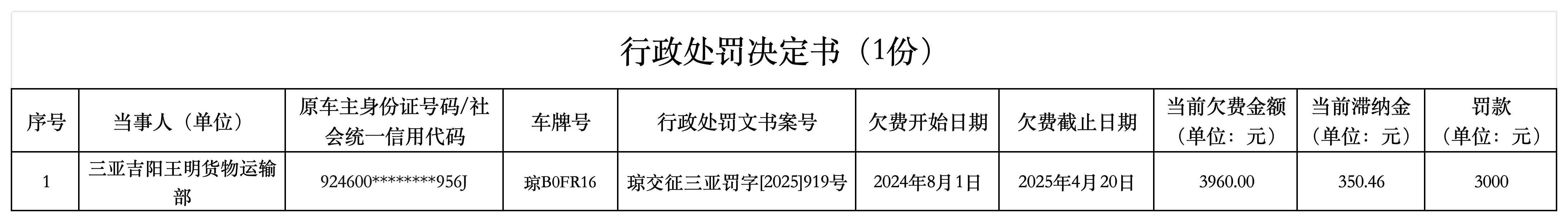 限你(单位)在本公告送达之日起15个工作日内到海南省三亚市吉阳区凤凰路123号(海南省交通规费征稽局三亚分局)处开具《海南省非税收入一般缴款书》,并按《海南省非税收入一般缴款书》要求进行缴款。