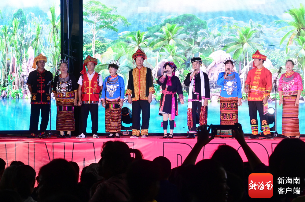 当晚,什龙村村民黄锋清与9位民间文艺爱好者也登上了“村晚”的舞台,他们身着黎族筒裙、头戴藤编斗笠,把《亲加奔 亲人来》的旋律唱得格外动情。