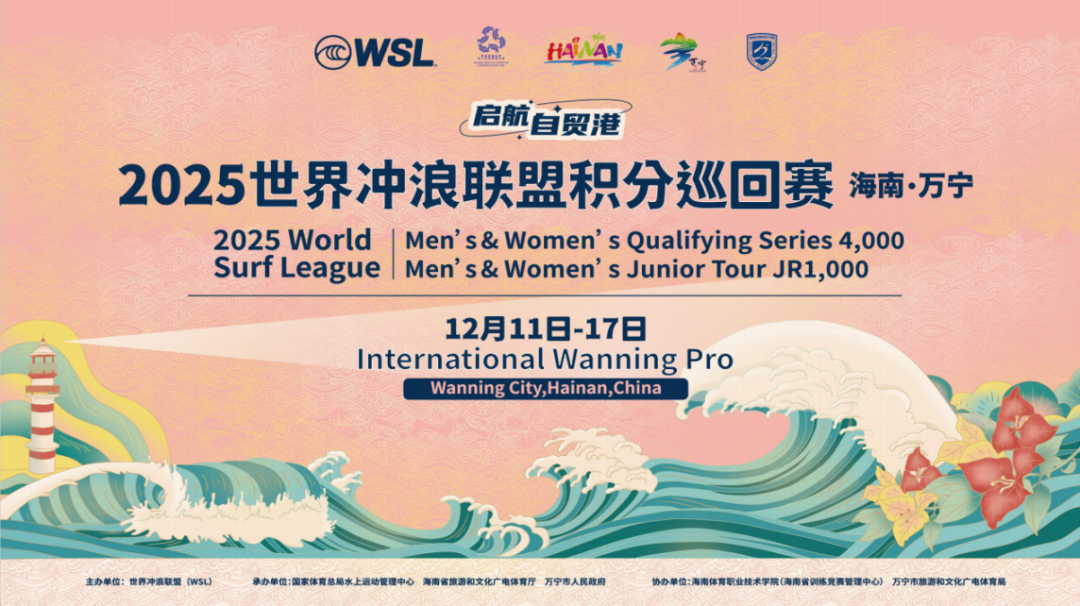 世界冲浪联盟积分巡回赛定于12月11日至17日在万宁日月湾举行。这是自2020年以来,万宁再次承办的国际高水平冲浪赛事。(来源:万宁发布)