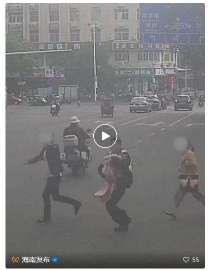 近日,在福建晋江,一幼童突发高烧并出现惊厥,交巡警怀抱孩子狂奔去医院!(来源:人民网)