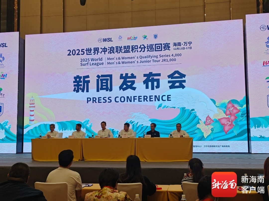 南海网、新海南客户端12月8日消息(记者苏桂除)12月8日,2025世界冲浪联盟积分巡回赛-海南·万宁新闻发布会在海口举行,本次赛事将于12月11日至17日在万宁市日月湾举行。