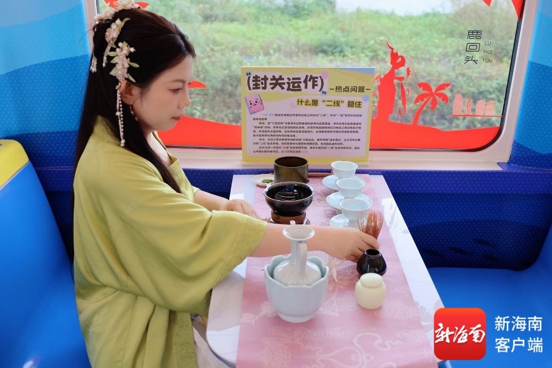 当列车沿着海岸线飞驰,窗外,南海的碧波与礁石渐次展开。车厢内,茶香取代了寻常列车的泡面味,国家二级茶艺师王玉莹正将一盏刚点好的茶奉至记者面前——茶沫之上,一幅微缩的“三乐”清晰可见,旋即又在汤纹流转中缓缓消散,妙趣横生。