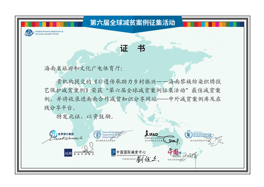 海南黎族纺染织绣技艺保护减贫案例入选全球最佳减贫案例