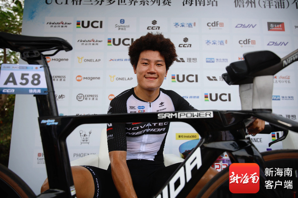 徐兆亮以23:05的亮眼成绩刷新本站男子组赛道纪录,引得现场一片惊呼。他坦言这是冬训休息阶段,是专程来海南比赛。“能在这样的状态下拿出稳定输出,我比较满意。”本次参赛目标是锁定明年世锦赛资格,他特别点赞赛事专业性:“国内业余赛里很少见这么规范的ITT设置,发射台和路线规划都很专业,容易出成绩,不愧是UCI级别。”