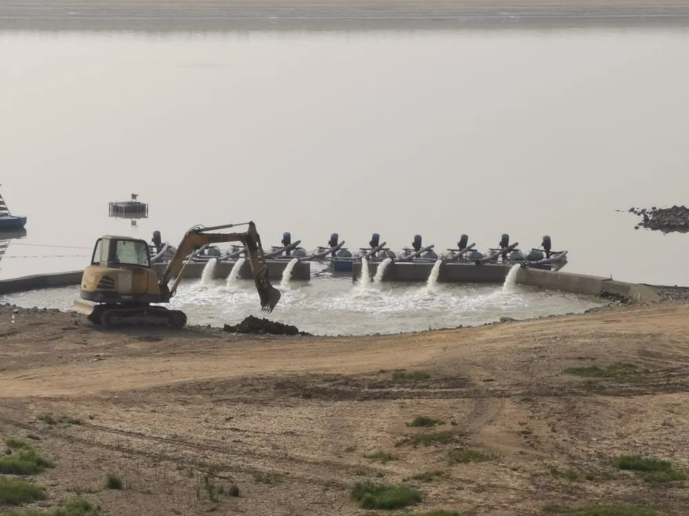 12月14日6时,鄱阳湖跌破极枯水位线,通江水体面积较丰水期减少九成。(来源:人民日报)