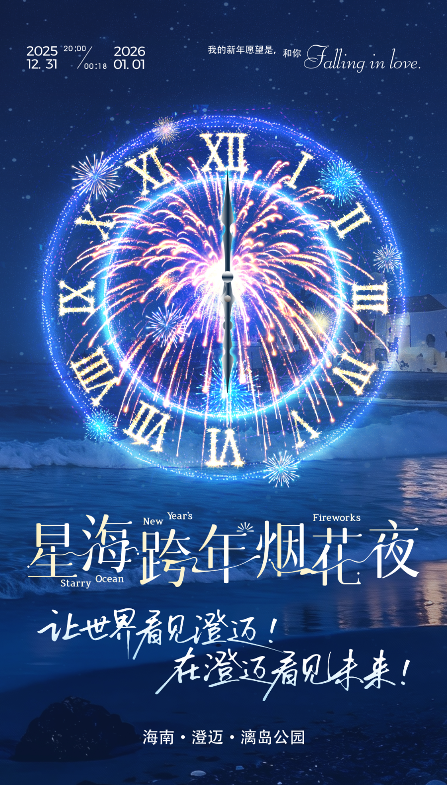 12月31日20:00至2026年1月1日00:18,“星海跨年烟花夜”活动将在海南澄迈漓岛公园举行。据悉,此次活动将呈现吉尼斯纪录团队定制焰火秀、千架无人机创意表演及知名歌手领衔的现场演出,澄迈这座海南西线核心小城也将因此成为跨年热门目的地。