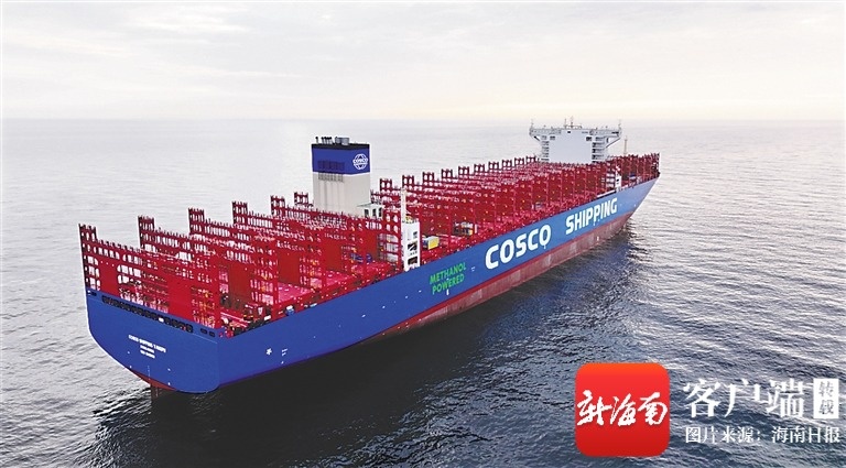 资料图:我国首艘甲醇双燃料动力集装箱船“中远海运洋浦”轮首航停靠洋浦国际集装箱码头,加注200吨国产绿色甲醇。