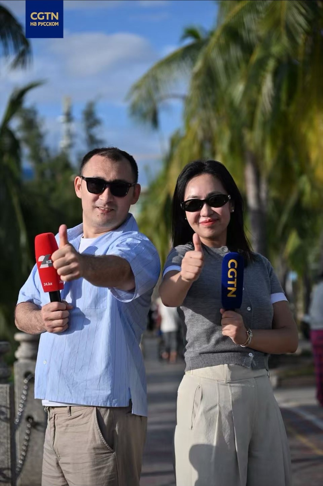△总台CGTN俄语网红记者与哈萨克斯坦记者在海南发起联合报道