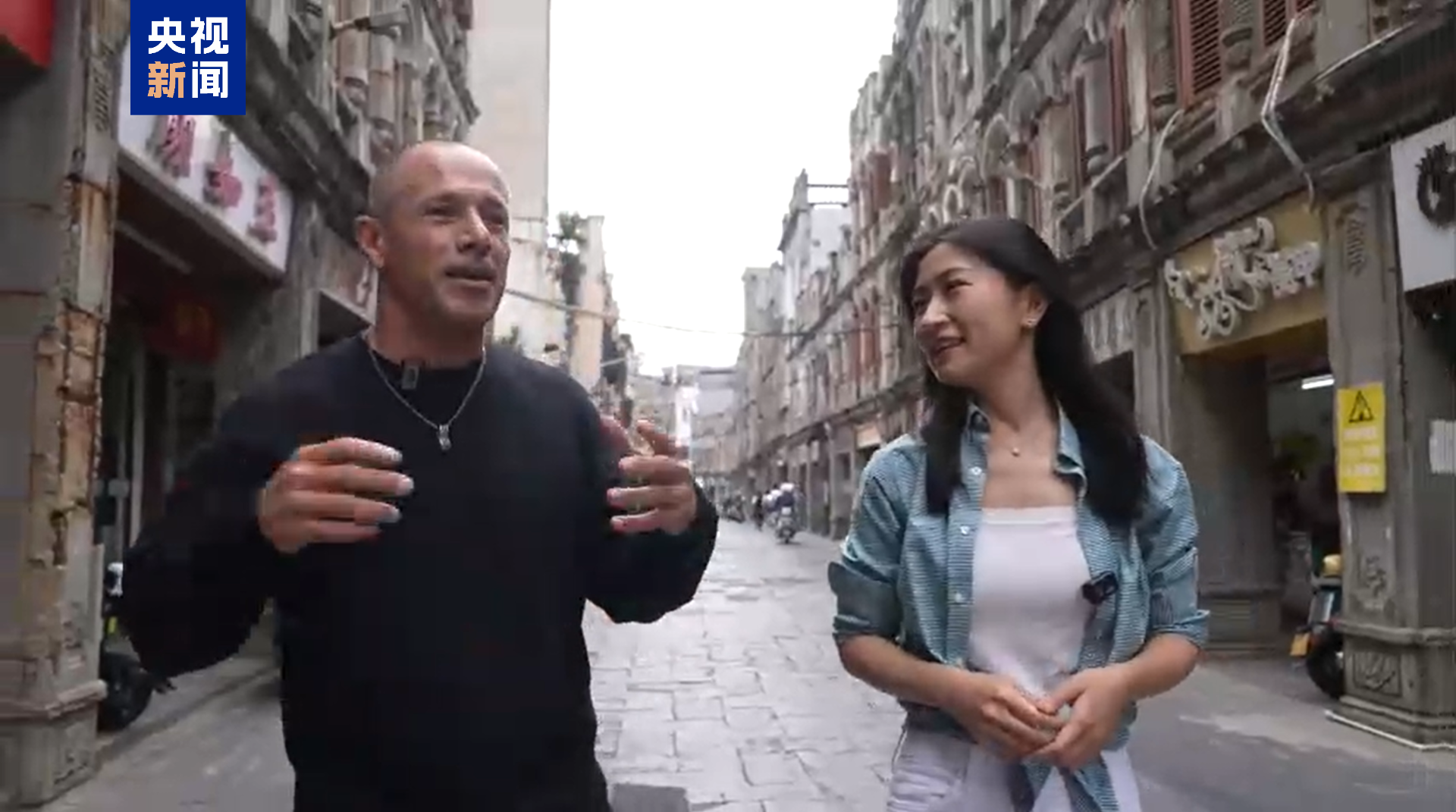 △意大利籍嘉宾Franc带领总台CGTN网红记者打卡文昌文旅场景