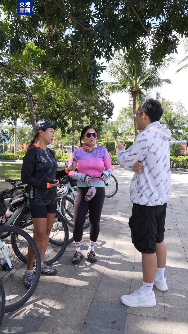 总台CGTN网红记者张海翔在海南517骑行驿站采访时,恰巧遇到来此休息的新加坡骑行团。骑行团成员表示,在社交媒体上关注到了海南的美丽风光,新加坡有直飞海南的航班,而且可以免签入境,这激发了他们的兴趣,下决心来海南骑行。骑行结束后,他们还会去免税店再“买买买”一波。
