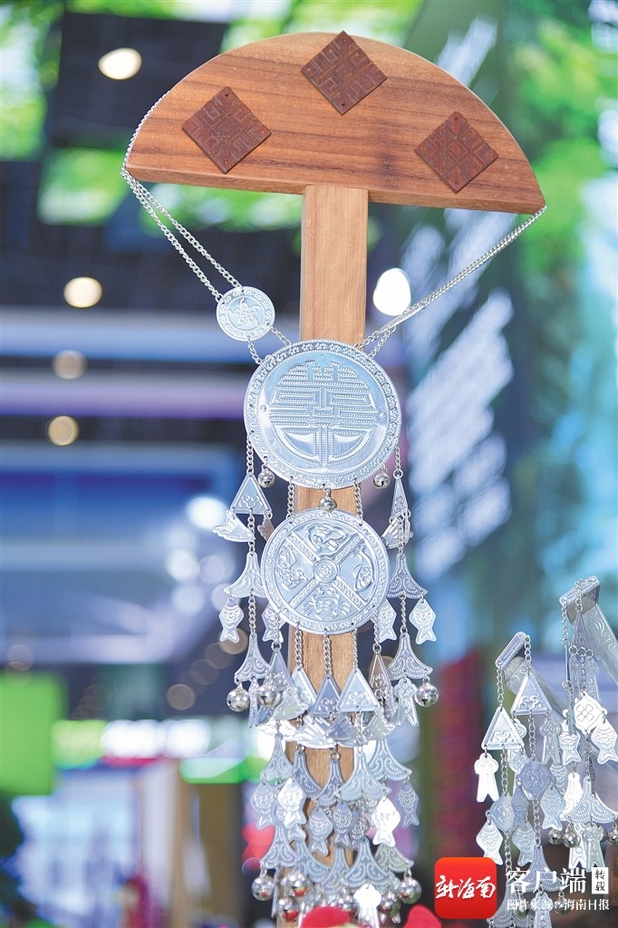 旅交会阳光海南展区内展陈的少数民族饰品。省旅文厅供图