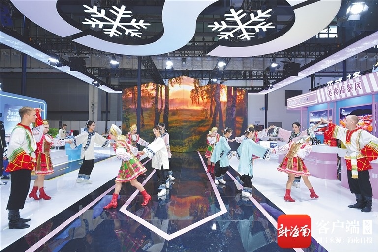 旅交会黑龙江展馆内,中外演员们上演特色演出。省旅文厅供图