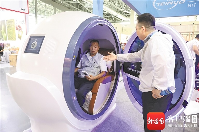 观众在体验一款石墨烯律动太空舱。海南日报全媒体记者 邱肖帅 摄