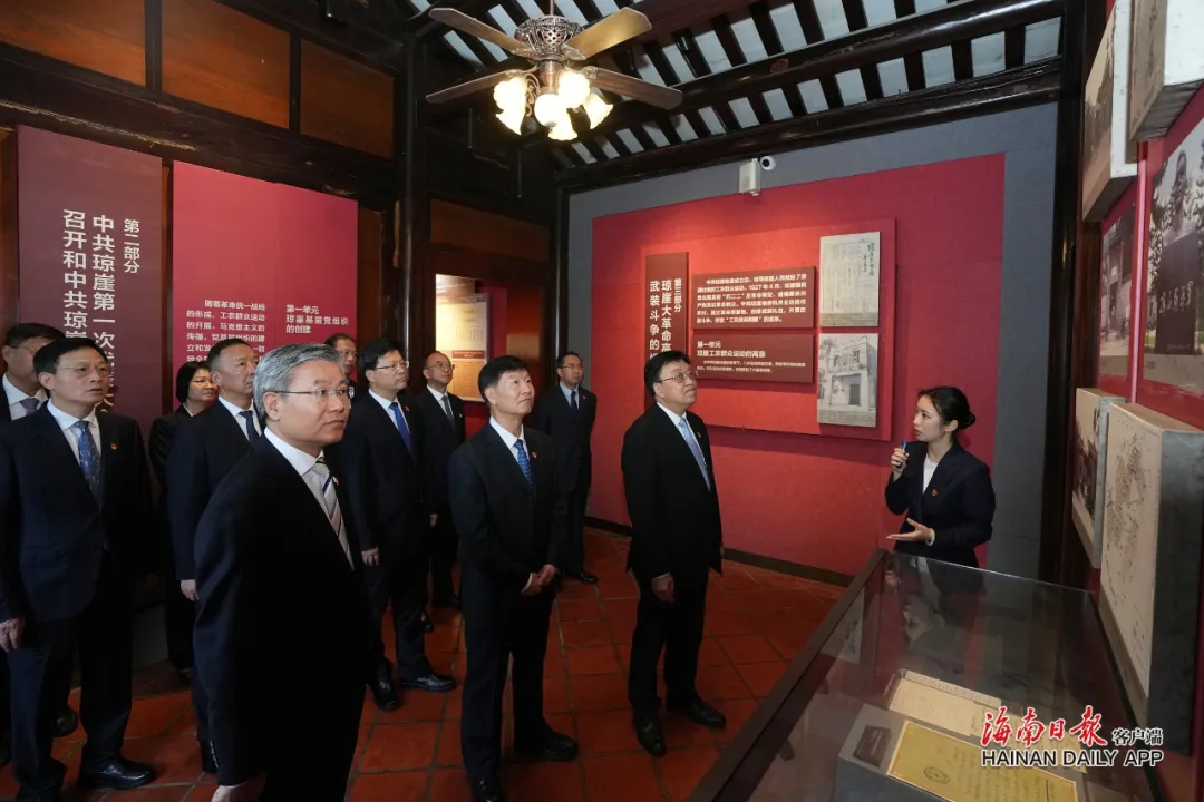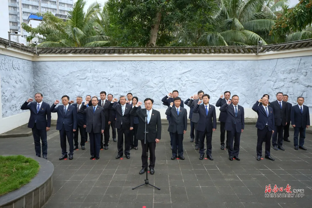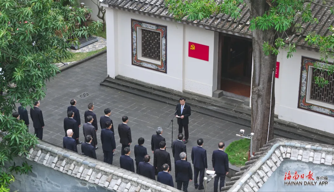 清晨的海口市龙华区解放西路竹林里131号静谧而庄重。这座闹市中竹林掩映的老宅,是琼崖革命启航之地。省委书记冯飞,省委副书记、省长刘小明,省政协主席李荣灿等现职省级领导怀着无比崇敬的心情走进这里,以参观史料展陈、听取主题报告等方式,回顾琼崖革命历程,汲取历史经验和精神动力。展馆内一张张图片、一份份档案文件、一件件历史实物,静静诉说着琼崖革命先辈为了崇高理想挥洒热血、投身伟业的英雄壮举与不朽功绩。参观学习结束后,冯飞带领全体同志面对鲜红的党旗庄严宣誓。