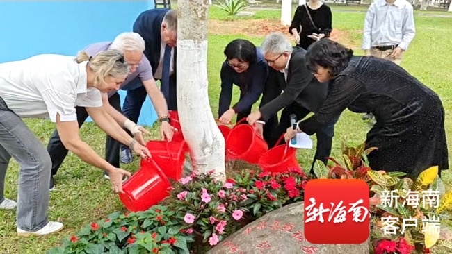 双方为友谊树浇水。儋州融媒体中心供图