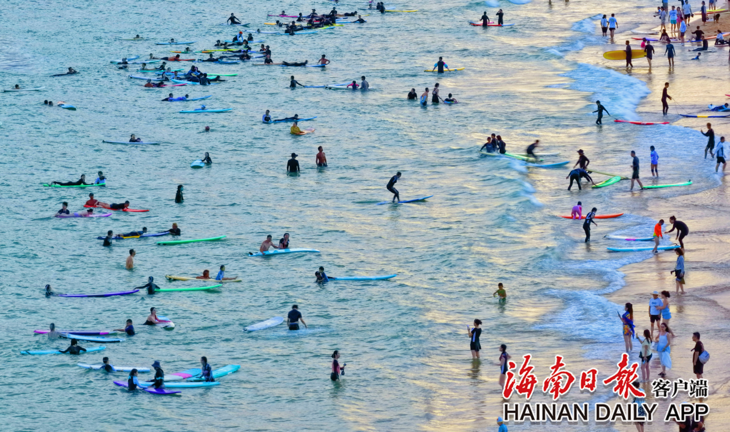 游客在海南万宁日月湾冲浪。海南日报全媒体记者张茂 特约记者王聘钊 摄