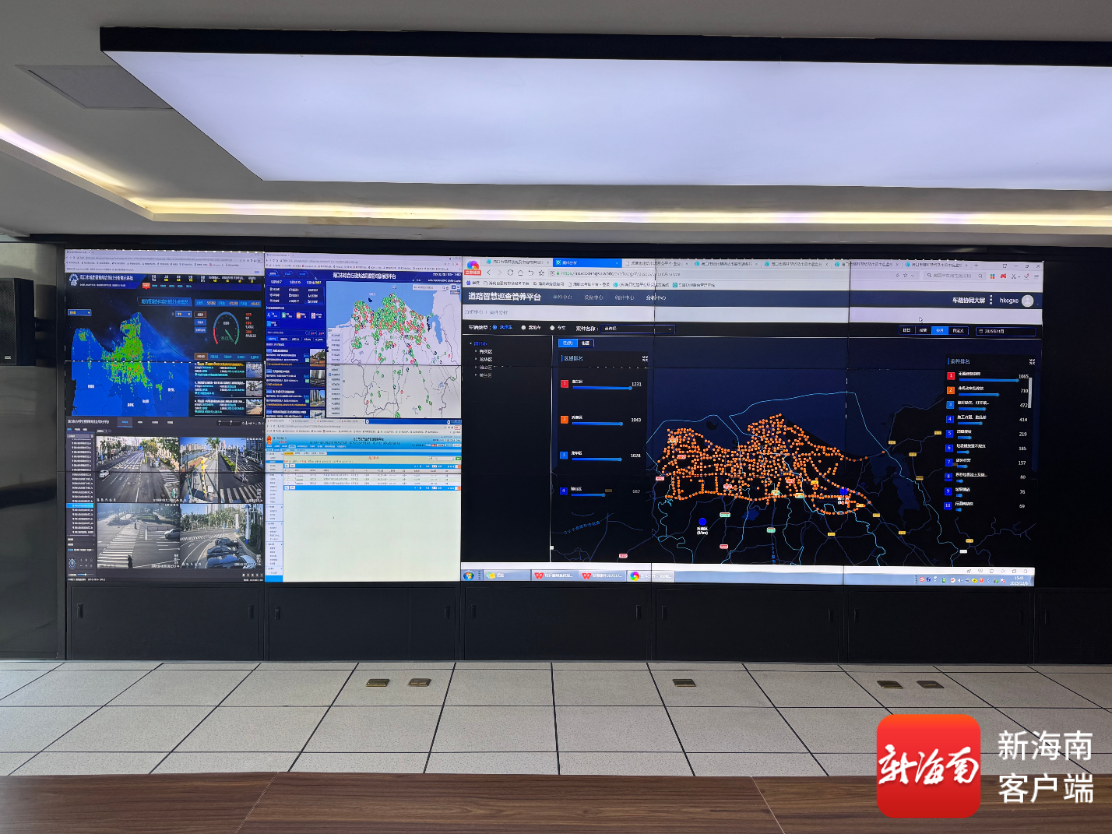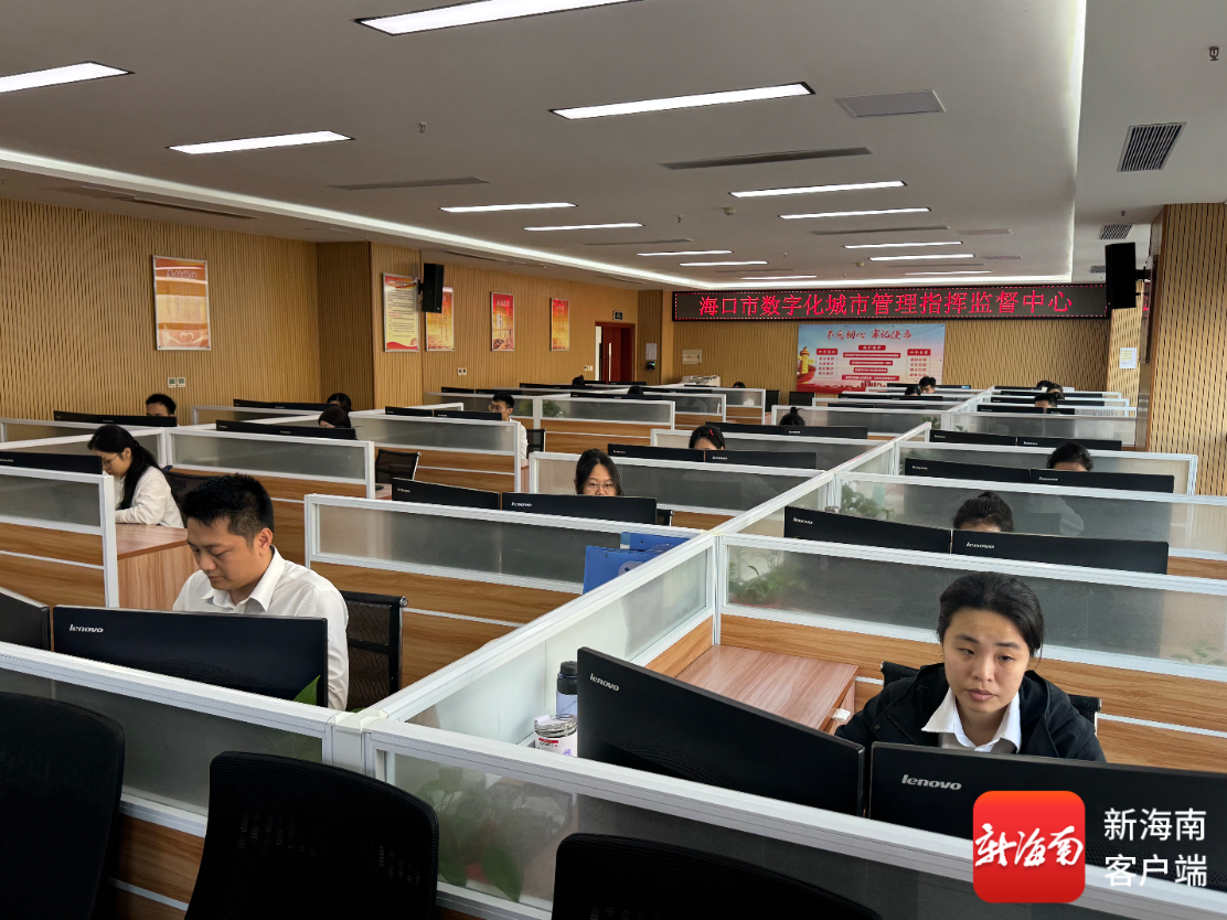 在海口市“数字城管”指挥中心内,大屏上实时监测着城市管理的方方面面,市容市貌、施工管理、环卫市政……这些具体的监测事项在大屏一览无遗。而大屏前,人工坐席专注地处理系统的预警事件。这里便是海口的城市管理智慧大脑。