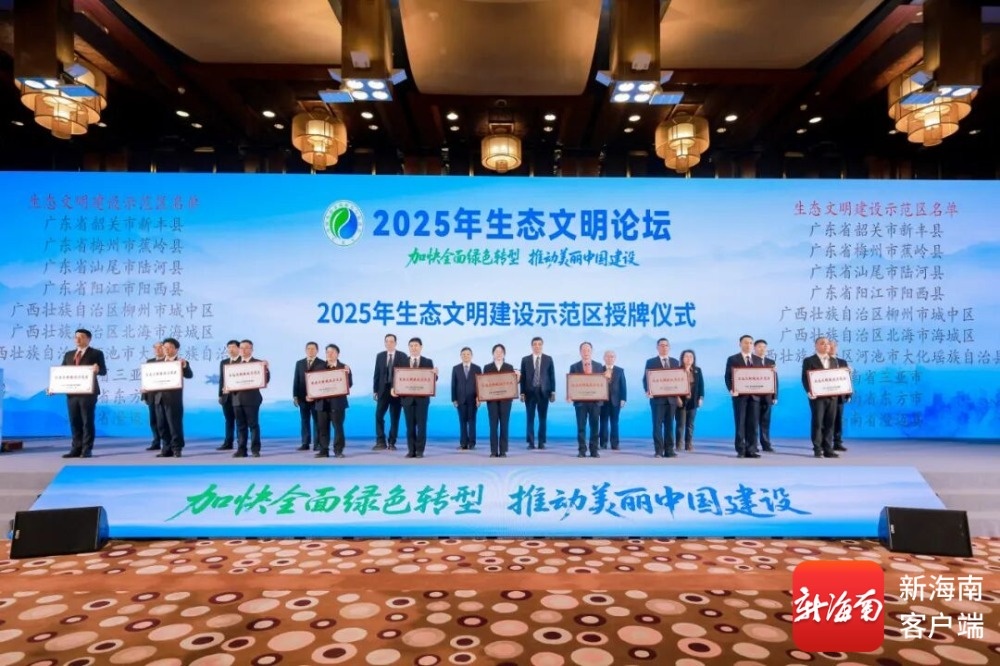 南海网、新海南客户端12月25日消息(记者 谭琦)12月24日—25日,2025年生态文明论坛在北京举行。生态环境部为2025年生态文明建设示范区、“绿水青山就是金山银山”实践创新基地进行命名授牌,海南多地入选。