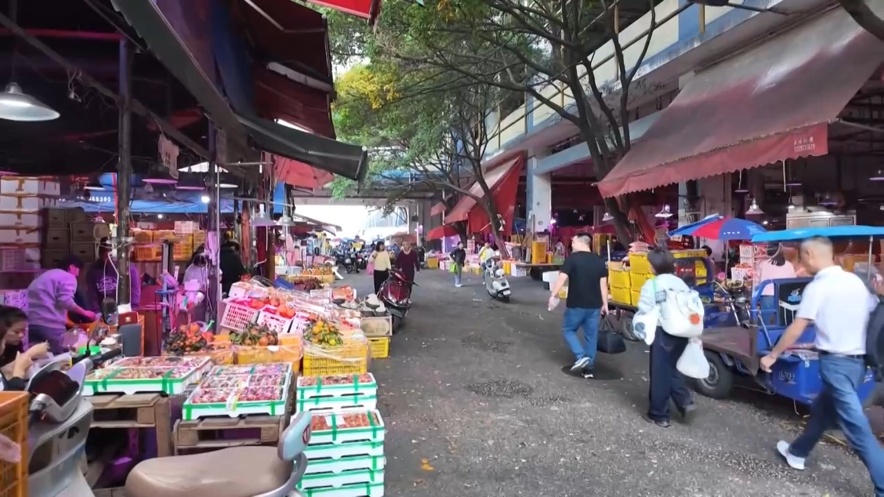 位于广东广州的江南果菜批发市场,是我国果菜销量较大的批发市场之一,果菜年总交易量达500多万吨。临近元旦,市场的水果蔬菜进入交易旺季。