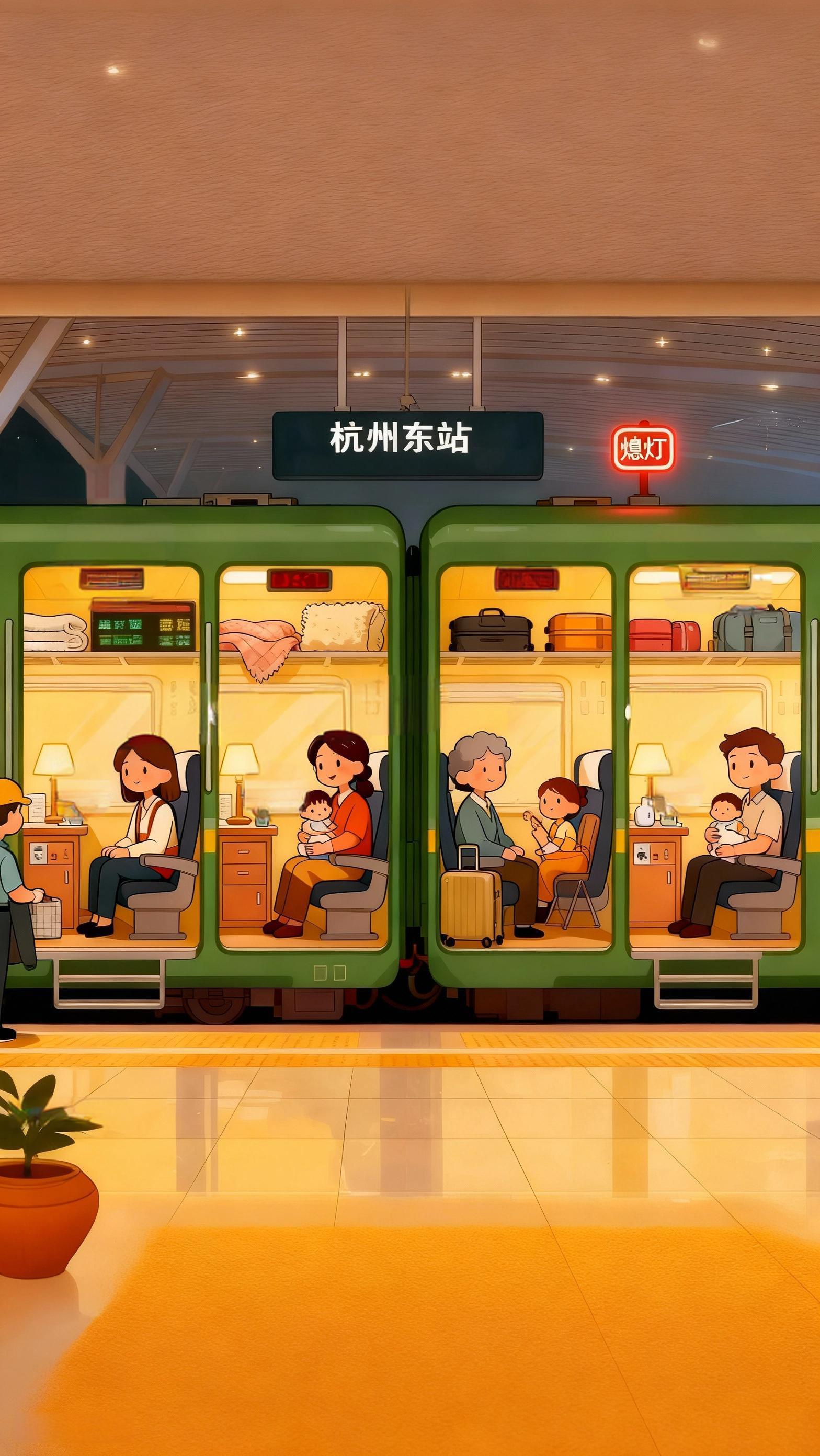 据“杭州发布”报道,“星辰守护”夜间休息区开始试运行,每天22:00至次日8:00,只要旅客按要求提供相应车票,就可以进入“星辰守护”号。