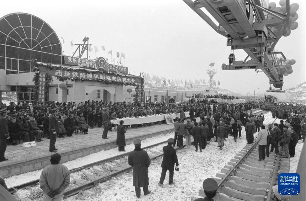 1991年12月26日,陕西省西安至延安铁路铺设完了最后一排路轨,至此西延铁路全线贯通,结束了延安不通火车的历史。新华社记者 姚宗仪 摄