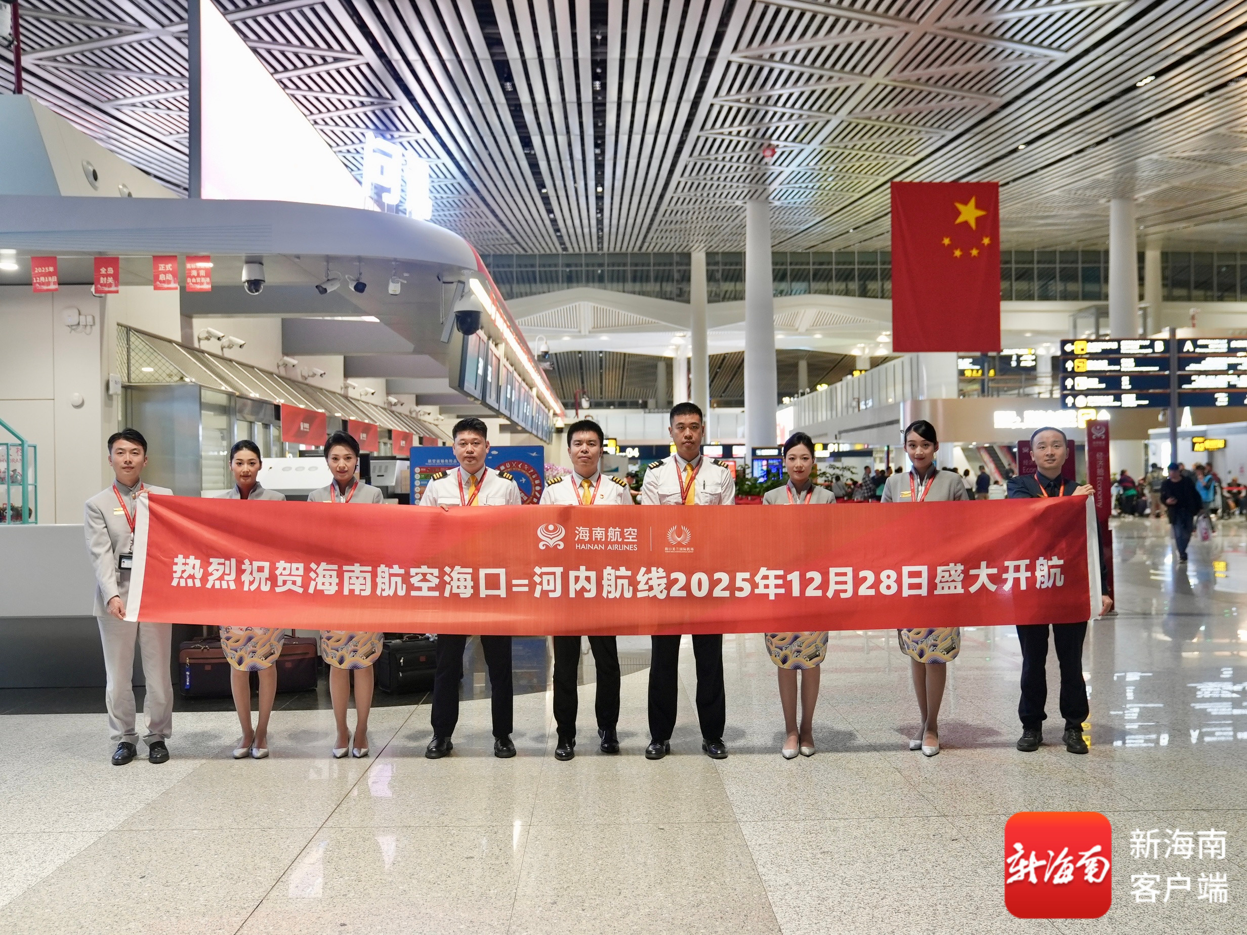南海网、新海南客户端12月29日消息(记者 丁文文 通讯员 高桥桥 张瀚兮)12月28日晚,新海航航空集团旗下海南航空海口⇌河内HU783航班从海口美兰国际机场起飞,标志着海南航空海口至河内国际航线正式开通。该航线的开通将进一步提升中国与越南两国之间的友好交流,为经贸合作和人文往来创造更多机会,推动双方在多领域的合作。