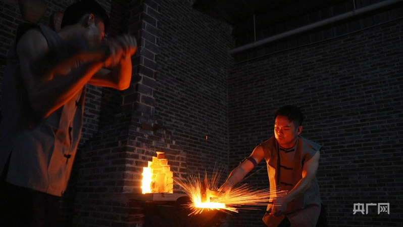 “飞天”刀剪第五代传承人黎勇正在打铁(央广网记者 白刁尹 摄)
