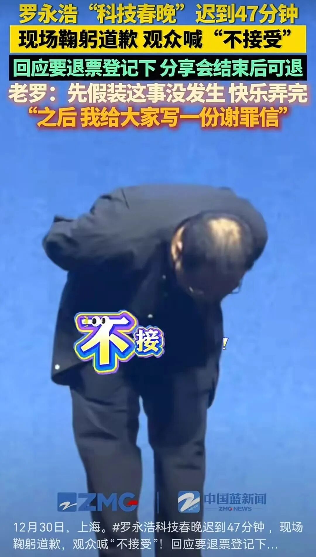 罗永浩分享会迟到超40分钟,观众大喊退票!本人鞠躬致歉