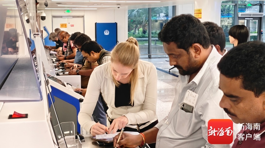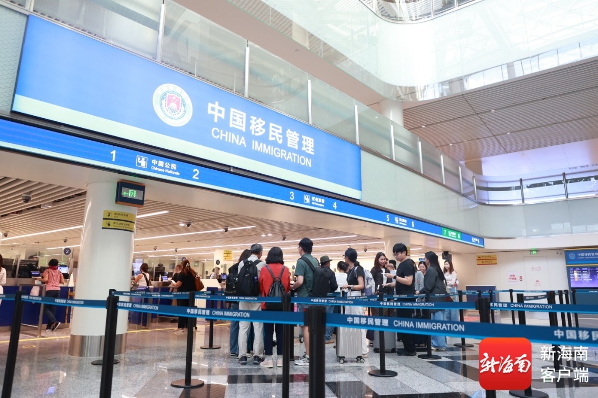 海口美兰边检站民警为旅客排队办理入境手续。海口美兰机场供图