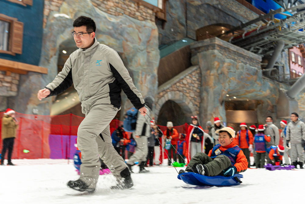 在南方城市上海,“含冰量”持续上升。位于上海临港新片区的上海耀雪冰雪世界,推出“冰雪+迎新”系列活动。雪场新增沉浸式空中演艺“奇幻雪境——星河漫雪秀”,将高空杂技、舞蹈、灯光、音乐、多媒体技术与雪景融合。憨态可掬的企鹅也将来到雪场巡游,为亲子家庭提供“科普+文旅”新体验。
