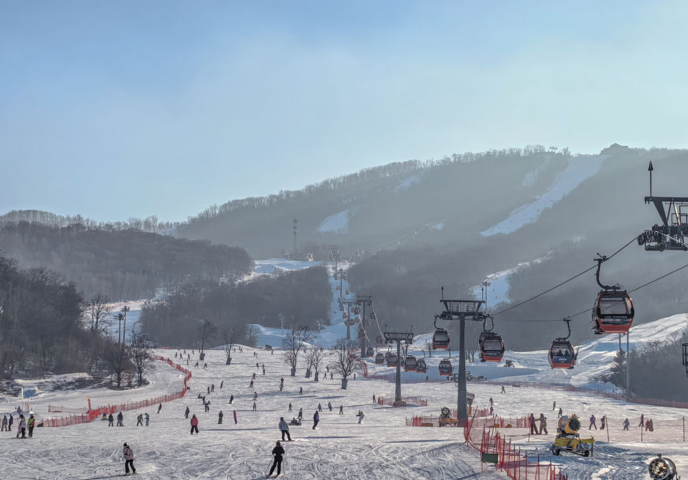 连日来,位于吉林省吉林市的中旅松花湖度假区,游人络绎不绝。山腰处,雪友们飞驰而下,腾起阵阵雪雾;山脚下,众多初学者在教练指导下认真练习基本功。