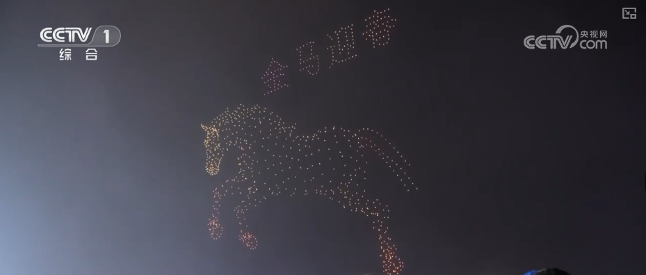 在青海西宁,千架无人机时而汇聚成奔腾的骏马踏云而行,时而幻化为展翅凤凰,在夜空中翩然起舞。以深邃天幕为画卷,以绚丽灯光为笔墨,璀璨星河点亮2026年的序幕。