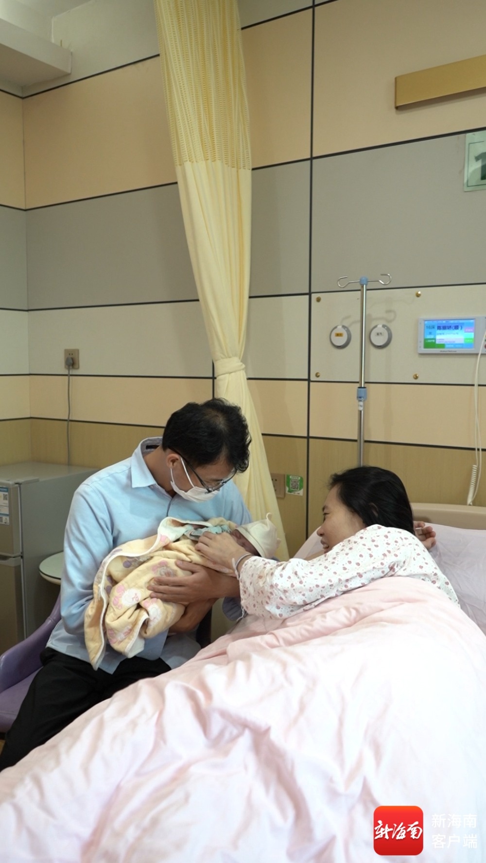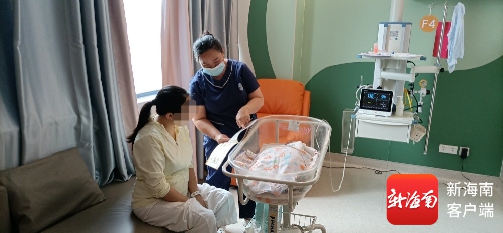 在海口市妇幼保健院,陈先生与爱人在照顾刚出生的宝宝。记者 陈元能 摄