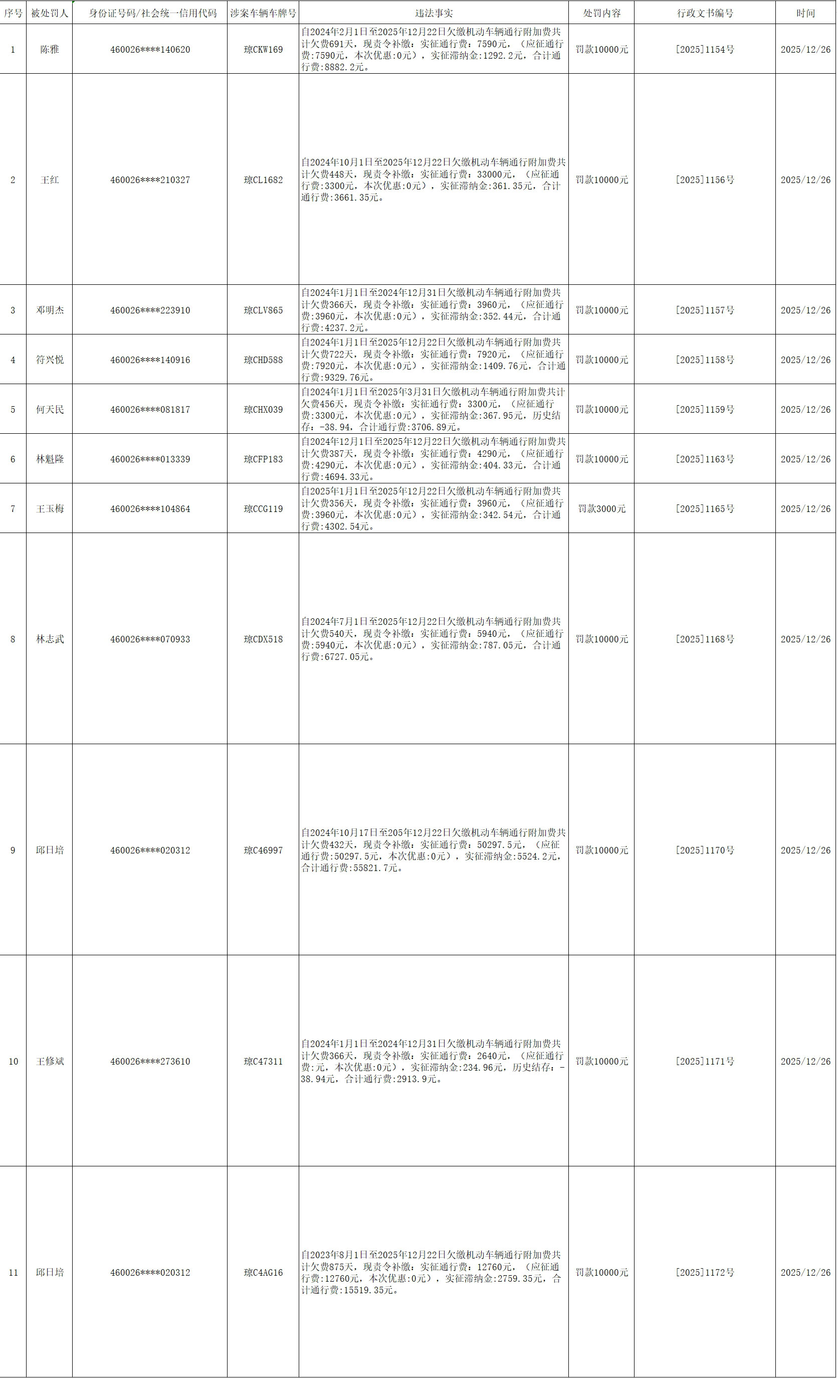海南省交通规费征稽局屯昌分局2026-01-06 16:25:20