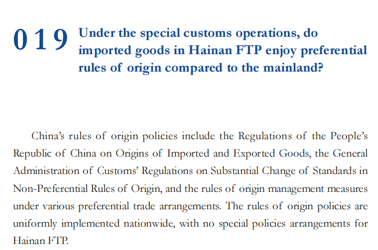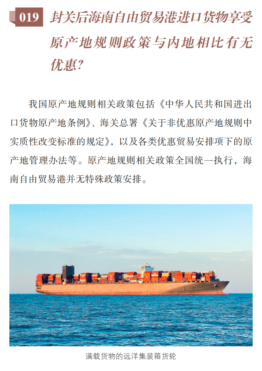 海南自由贸易港封关百问(19)封关后自贸港进口货物享受原产地规则政策相比内地有无优惠?