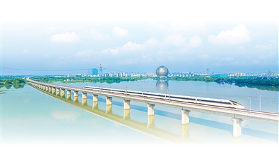 沪苏湖高速铁路上的列车飞驰而过。屠旭东摄(影像中国)
