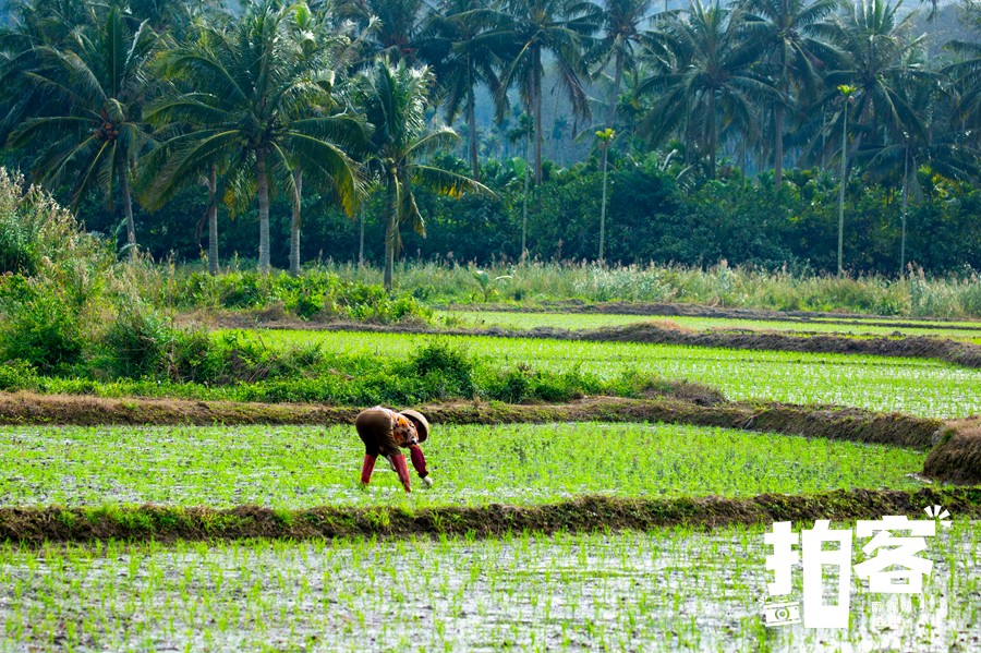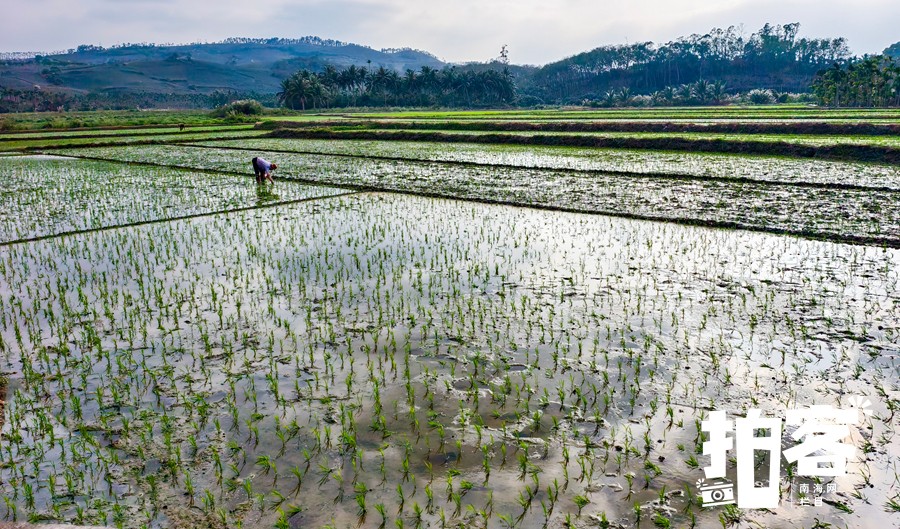 元旦刚过,万宁市龙滚镇端熙村的村民们已忙着早稻栽秧。只见田间小路蜿蜒,沟渠纵横,白鹭轻翔。水田如镜般明亮动人,刚栽下去的秧苗在风中摇曳生姿,预示今年将又是一个丰收年。
