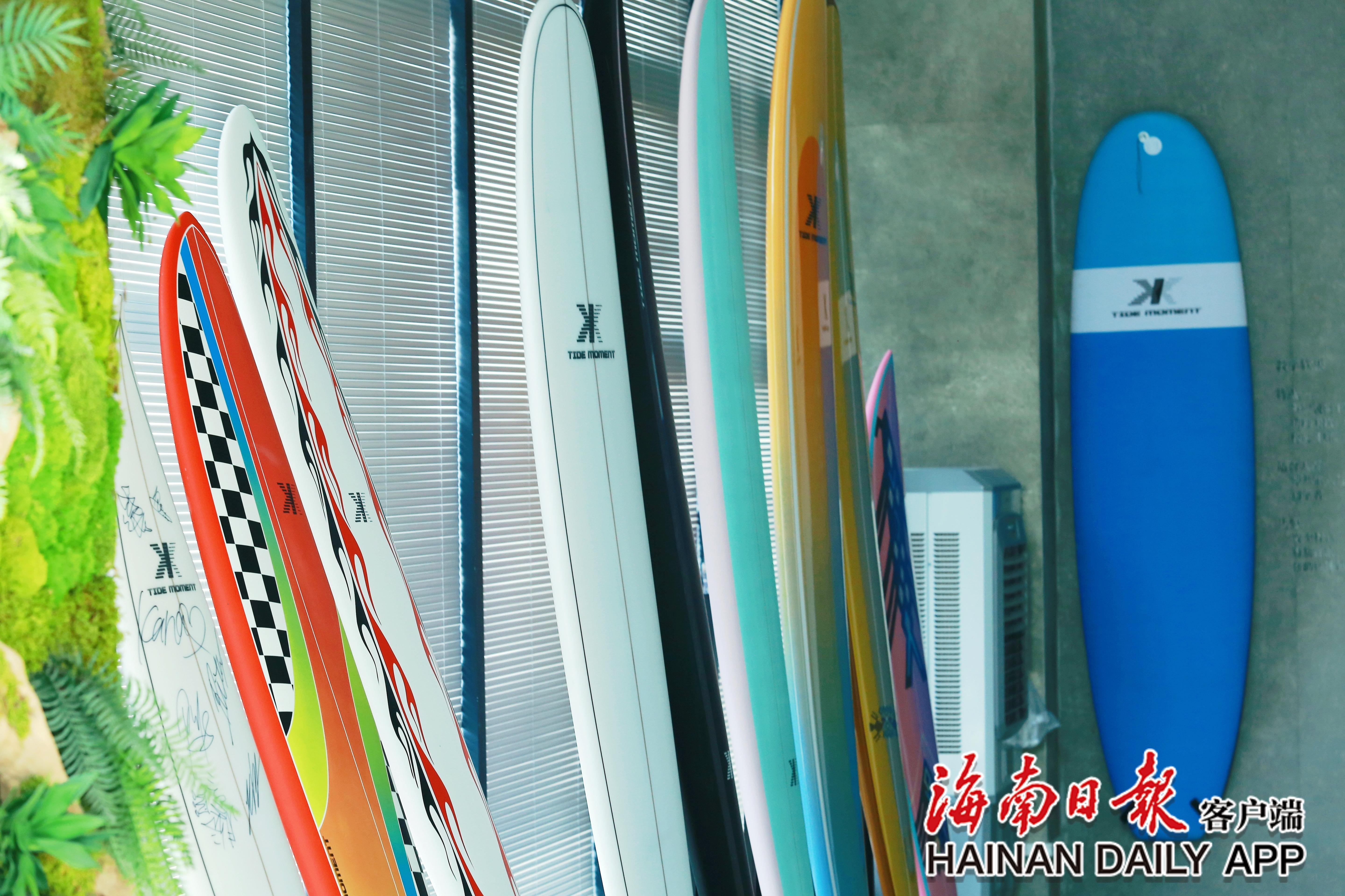 万宁本土冲浪板品牌“汐刻”冲浪板。通讯员 陈先哲 摄