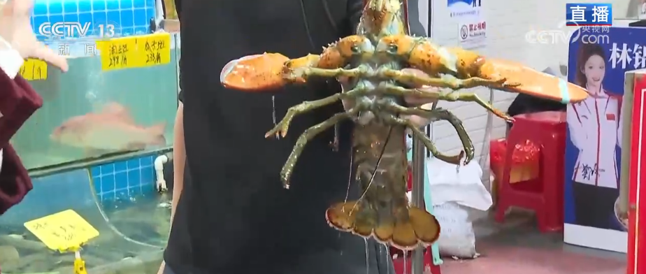 走进“八市”,就像走进了一个活生生的“海鲜大观园”。这些是市场里的“重量级选手”,这只帝王蟹张牙舞爪、个头硕大,掂量一下,单个的重量就有好几斤。旁边的这个是波士顿大龙虾,是宴请餐桌上的一道“硬菜”。这种在本地叫作“富贵虾”,大小不一,这只已经和我的手腕差不多粗了。