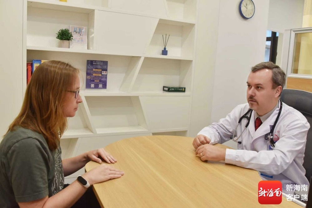 “洋医生”沈义扬在给国际患者看诊(海口市人民医院供图)。