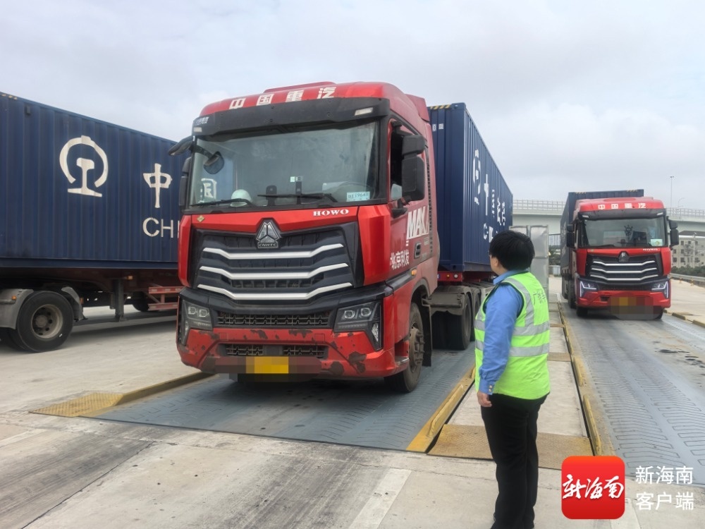 当天上午10时37分,在海口站货列查验区,载有海关监管货物的卡车顺畅地通过了智慧卡口;10时48分,完成过磅、安检、查验、施封等流程;10时54分,集装箱卸车到指定位置待装车,基本实现“无感通关”;14时43分,集装箱已装上火车,等待挂运到轮渡过海。