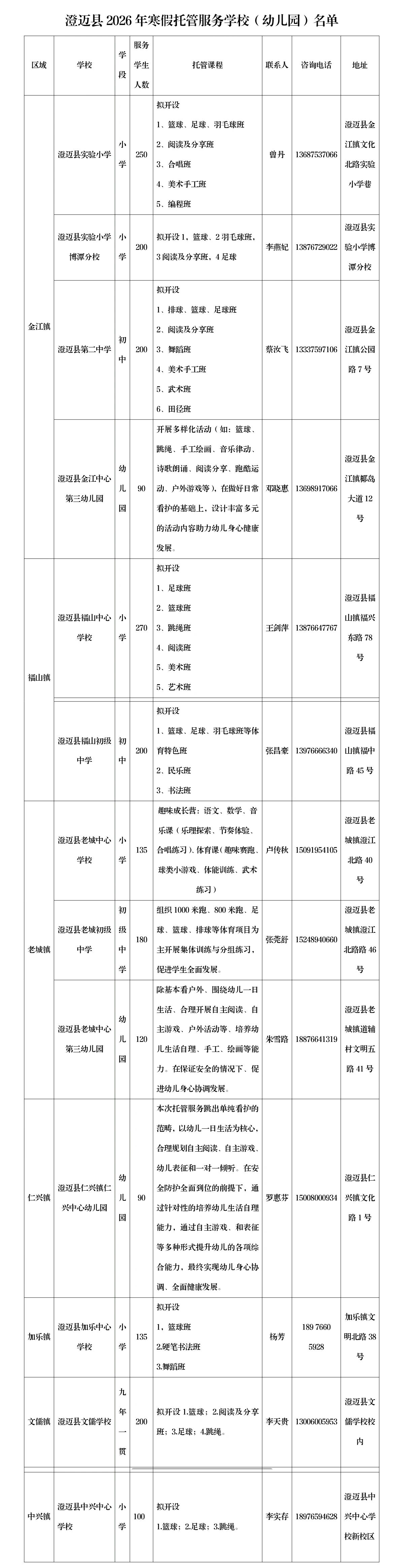 共2170个学位 澄迈县2026年寒假托管服务来啦