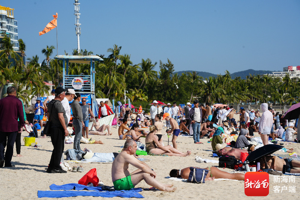 外国游客在三亚大东海旅游区享受日光浴。受访者供图