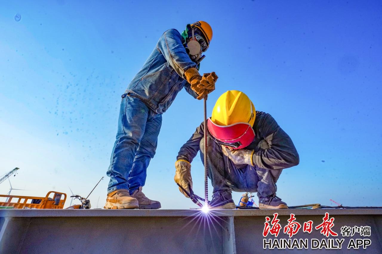 2026年1月12日,在临高金牌港开发区港口及配套工程项目一期工程现场,施工人员推进码头引桥主墩建设。