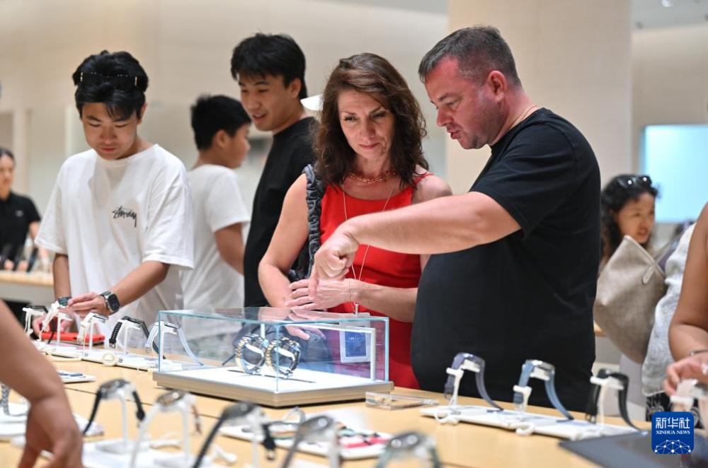 外国顾客在三亚国际免税城选购商品。新华社记者 郭程 摄