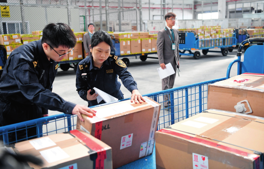 海关工作人员对三亚航空口岸第一批“零关税”货物进行核验放行(2025年12月18日摄)赵颖全摄 /《瞭望》新闻周刊记者