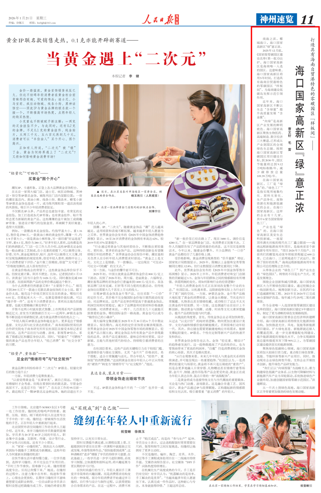 人民日报海外版第11版刊发文章
