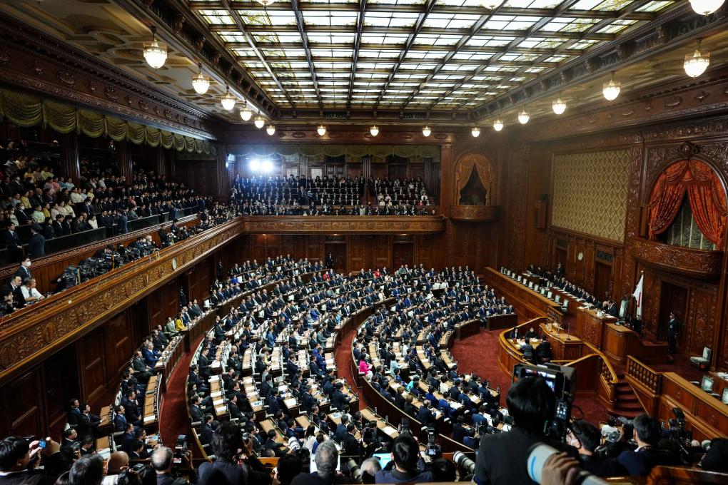 这是1月23日在日本东京拍摄的国会众议院全体会议现场。日本众议院议长额贺福志郎当天在众议院全体会议上宣读解散诏书,日本众议院正式解散。新华社记者贾浩成摄